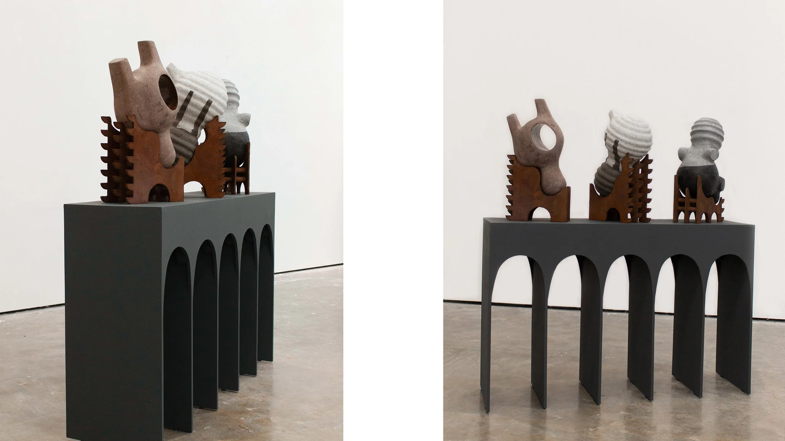 Expansion into outer space will inevitably depend on harnessing natural and harvestable materials. These sculptures envision a speculative future of resource extraction beyond Earth, exploring the intersection of industry and the organic. Their forms capture the tension of this meeting point, incorporating textures and ribbing that evoke mining processes. Constructed from hybrid materials, each piece integrates elements representative of resources critical for extraterrestrial mining, embodying the possibilities of a new frontier in material exploration.